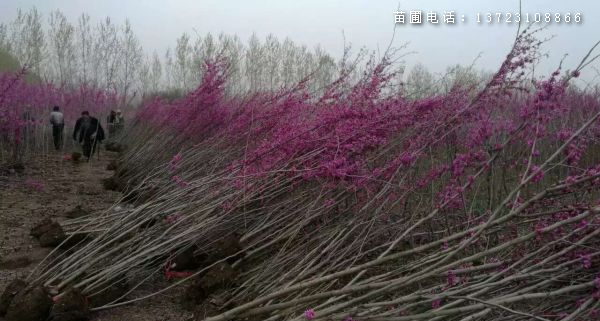 花形似蝶,密密层层,满树嫣红。荚果狭披针形,扁平,长5-14cm,宽1.3-1.5cm,沿腹缝线有狭翅不开裂,种子2-8粒,扁圆形,近黑色。三,潢川丛生紫荆基地幼苗繁育1,播种繁育。9-10月收集成熟荚果,取出种子,埋于干沙中置阴凉处越冬。3月下旬至4月上旬播种,播前用60℃温水浸种,水凉后继续泡3-5天。每天换1次凉水,种子吸水膨胀后,放在15℃环境中催芽,每天用温水淋浇1-2次,待露白后播于苗床。