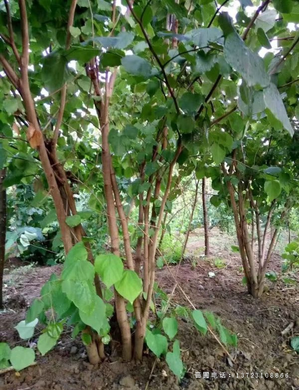 直至落叶,终叶片变为金黄,所以我认为我们不能单纯把它当做一种观花植物来对待,也该把它当做一种秋季的色叶植物,充分发挥它的观赏特性。二,潢川丛生紫荆基地的修剪1,幼树树形的培养潢川丛生紫荆基地在园林中常作为灌丛使用,故从幼苗抚育开始就应加强修剪,以利形成良好株形。幼苗移栽后可轻短截,促其多生分枝,扩大营养面积,积累养分,发展根系。翌春可重短截,使其萌生新枝,选择长势较好的3个枝保留,其余全部剪除。生长期内加强水肥管理。